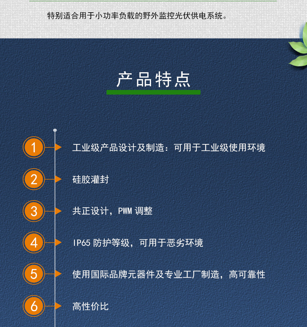 奧爾力Suncharger-mini系列控制器廣泛應(yīng)用于600W以內(nèi)的光伏發(fā)電系統(tǒng)中,進(jìn)行充電和負(fù)載控制; 特別適合用于小功率負(fù)載的野外監(jiān)控光伏供電系統(tǒng)。